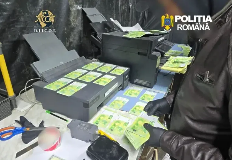 Румънската Дирекция за разследване на организираната престъпност и тероризма (DIICOT) разпространи снимки и видеоклипове от нелегалната печатница за пари в североизточния окръг Сучава, която беше разкрита след ареста на петима заподозрени в София.