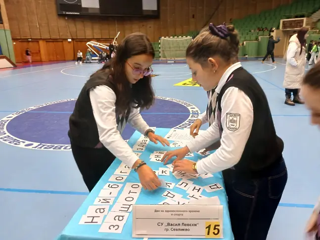 Пъзелът със зеленчуци и плодове не беше толкова труден и почти всички отбори успяха да се справят в определеното време. Те трябваше да се потрудят доста, за да подредят с предоставения им набор от букви най-дългата пословица, посветена на здравето.