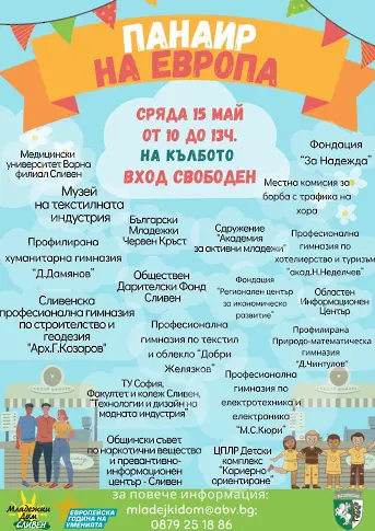 "Панаир на Европа" ще се проведе в Сливен на 15 май от 10ч. на "Кълбото". Информационното събитие се организира от Младежки дом - Сливен, а своите дейности ще представят 19 организации.