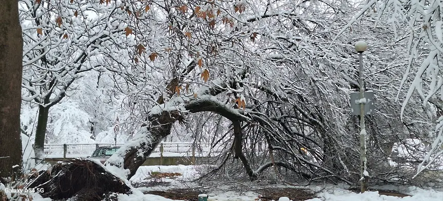 В община Враца на дежурния телефон има сигнали за паднали клони и счупени дървета. Към момента снегът натежава върху клоните и ги чупи.
