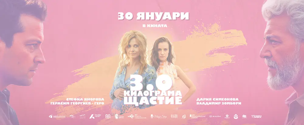 Най-новият филм на Зорница София „3.0 КИЛОГРАМА ЩАСТИЕ“ тръгва премиерно в киносалоните в цялата страна на 30 януари 2026 г. Сюжетът, написан по действителни събития, ще оживее на голям екран, поставяйки важни въпроси за това как, кога и на каква цена една жена може да стане майка. Преди това зрителите могат да видят официалния трейлър и плакат на лентата, в който главни роли заемат Стефка Янорова, Дария Симеонова, Владимир Зомбори и Герасим Георгиев – Геро. Сценаристи на „3.0 КИЛОГРАМА ЩАСТИЕ“ са Виктория Пенкова, Зорница София, Петър Делчев, камерата е поверена на Мартин Чичов, а музиката на Михаил Йосифов.