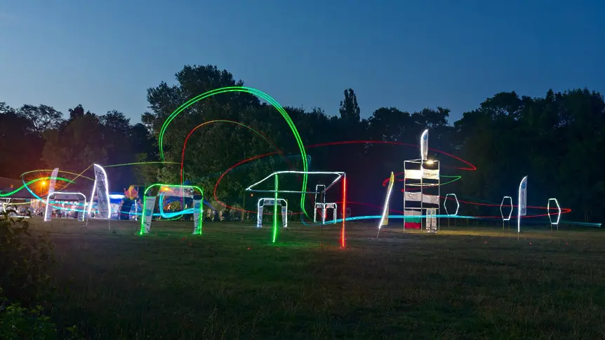 Посетителите и феновете на атрактивната надпревара ще имат възможността да наблюдават нощни кръгове, осветена вечерна писта, саморъчно изработени състезателни дронове, неонови препятствия и нетрадиционни светлинни инсталации. Участниците ще премерят сили в бързина, ловкост и въображение при навигацията на дрон.
