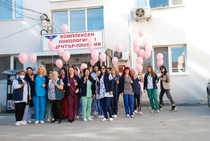 Розова панделка на ревера си поставиха, в знак на съпричастност към болните от рак на гърдата, в Комплексен онкологичен център – Пловдив. Лекари, медицински сестри и част от персонала се събраха точно в 13,00 часа в двора на лечебното заведение и пуснаха в небето розови балони, като с това изразиха подкрепата си към жените с коварната диагноза. Поводът е днешния Международен ден за борба с рака на гърдата.