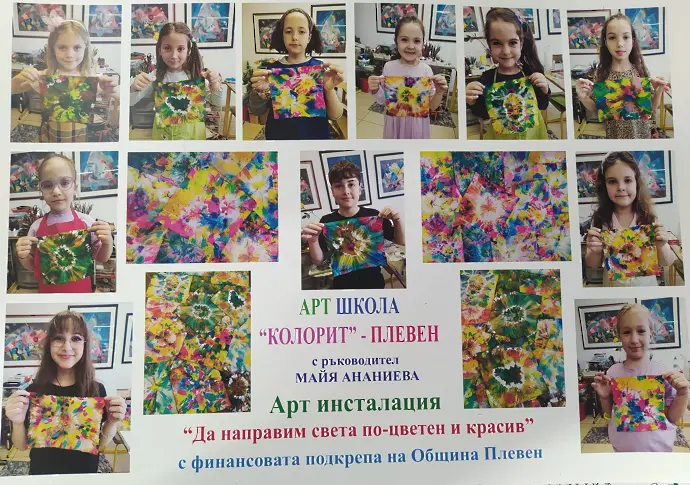 Арт Инсталация „Да направим света по-цветен и красив“ е един иновативен, експериментален и вдъхновяващ проект на арт школа „Колорит“ с ръководител Майя Ананиева, подкрепен и финансиран от Община Плевен като ярко културно събитие, представено в пространството на Художествена галерия „Илия Бешков“ – Плевен.
