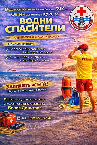 БЧК – Сливен организира провеждането на курс за водни спасители на басейн и водни спасители на плаж от 9-ти март 2026г.