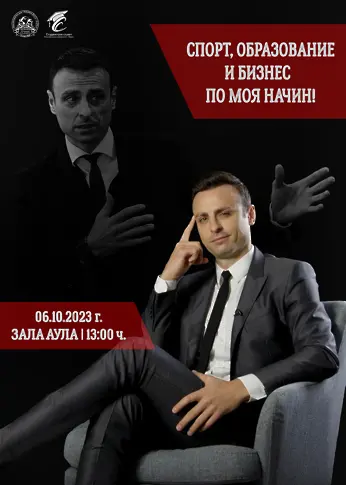 Дискусията е на тема „Спорт, образование и бизнес – по моя начин” и ще започне в 13:00 ч. в зала АУЛА.