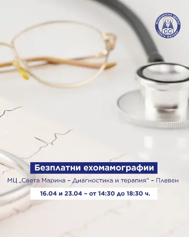 Медицински център „Света Марина – Диагностика и терапия“ – Плевен организира безплатни ехомамографии за жени на възраст от 18 до 30 години.