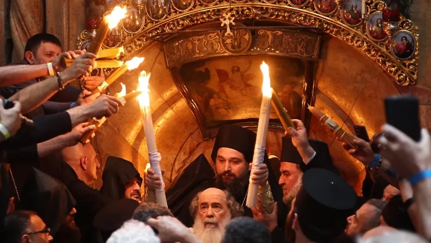 Тази година ритуалът се проведе при засилени мерки за сигурност и с ограничен брой посетители. Заради войната с Иран светите места бяха затворени в продължение на 40 дни, но израелските власти ги отвориха в четвъртък. Службата беше водена от Йерусалимския патриарх Теофил Трети.
