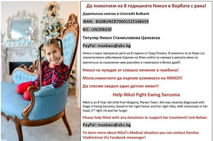 На 30-ти декември на площад "Възраждане" в Плевен се състоя благотворителен концерт „От деца за Никол – с любов!“, организиран с цел събиране на средства за лечението на Никол Цановска, която е с диагноза сарком на Юинг – злокачествен рак на костите. За лечението й е необходимо е да се направят изследвания в клиника в Турция и последваща операция, като стойността на изследванията е 100 000 евро.