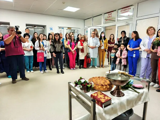 В празничния ритуал участваха още проф. д-р Елена Димитракова, дм – началник на Родилното отделение, проф. д-р Мая Кръстева, дм – началник на Отделението по неонатология, както и всички лекари, акушерки и медицински сестри от Клиниката.