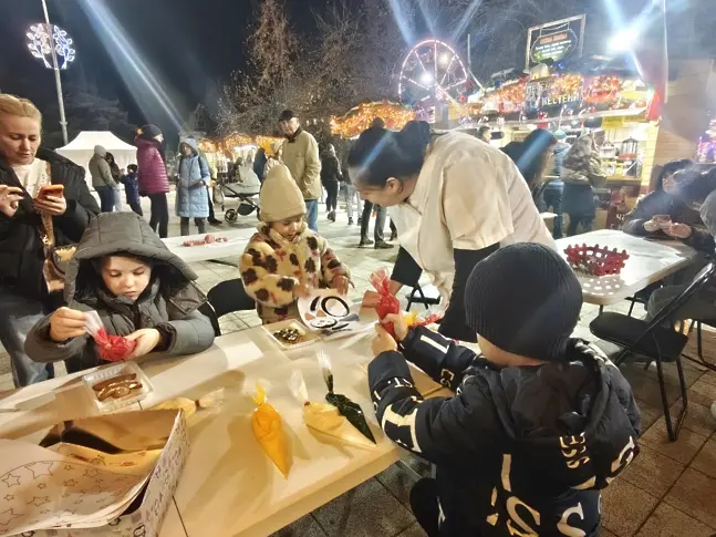 Близо 200 деца и родители се включиха в Коледната работилница за сладкиши в Коледното градче на Плевен! Малките кулинари имаха възможност сами да приготвят и украсят коледни меденки с помощта на майстор-сладкар Елена. Инициативата е част от празничната програма на Община Плевен и се реализира в партньорство с Cakes by ELI.
