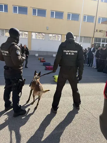 Двамата изнесоха презентации пред повече от 200 ученици и учители за рисковете от употреба на наркотици и хазартната зависимост. И двете лекции предизвикаха активни реакции и поредица въпроси, а на финала служители от отдел „Борба с наркотрафика“ направиха демонстрация на търсене на наркотични вещества с обучено митническо куче, в която се включиха и най-смелите сред учениците.