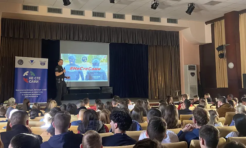 За втора поредна учебна година обединената кампания на Агенция „Митници“ и НАП „Не сте сами“ провежда срещи с ученици от София и страната по темите за опасностите от употребата на наркотични вещества и рисковете от развиване на хазартна зависимост.