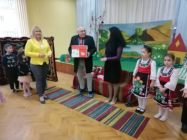 Част от тях са изработени ръчно от децата от ДГ "Русалка" в Русе и техните родители, които за четвърта поредна година правят този благороден жест както към болнолежащите, така и към екипа на онкодиспансера. С песни и благопожелания посрещнаха управителя на онкоцентъра д-р Камен Кожухаров, който лично посети учебното заведение, за да благодари на децата и техните учители!
