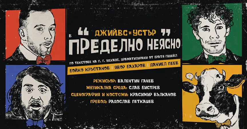 Бойко Кръстанов, Явор Бахаров и Даниел Пеев влизат в нова пиеса по текстове на П. Г. Удхаус. Премиерата на „Джийвс и Устър в Пределно неясно“ в Русе ще бъде на 8 август в Летния театър при Военния клуб. След успеха на „Отчаяни съпрузи“ това е второ представление, което събира тримата актьори на театралната сцена.