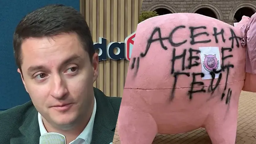 Народният представител от ПП-ДБ Явор Божанков бе специален гост в „Денят на Дарик“ и коментира казуса с разположеното пред Народното събрание огромно розово прасе касичка, което часове след появата си бе вандализирано със спрей и обиден надпис от „ДПС-Ново начало“.