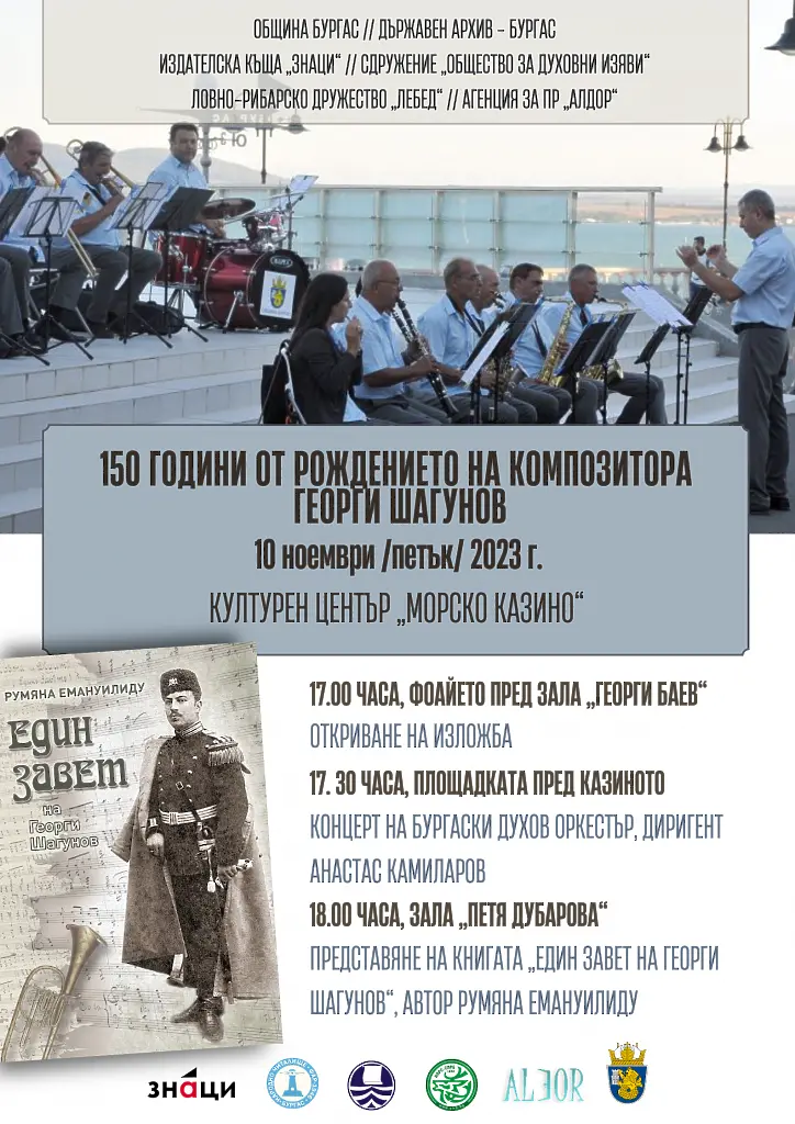 На 10 ноември 2023 г. се навършват 75 години от кончината на композитора Георги Шагунов, капелмайстор на 24 пехотен черноморски полк, автор на тържествения химн „Независимостта” и на още около 1500 музикални произведения за прослава на Бургас и Родината, почетен гражданин на Бургас.