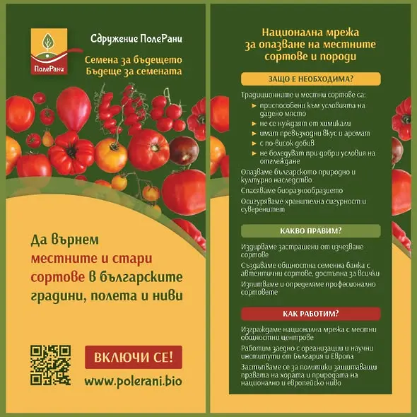 Скоро ще създадат първият официален каталог с местни, традиционни сортове и карта на биоразнообразието на културните растения. Всеки ще може да се снабди както със семена, така и да посети места, където се отглеждат културите, отглеждани и съхранявани. ПолеРани опазват природното и културно наследство на България, свързано със земеделието и храната.