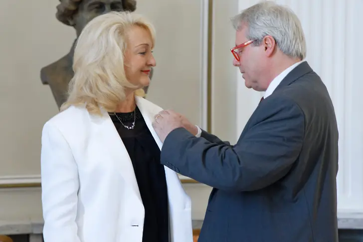 Н. Пр. Жоел Мейер, посланик на Република Франция в България, лично връчи високото държавно френско отличие на церемонията, която се състоя вчера на Сцена Ротонда в Държавна опера Варна. Събитието бе уважено от Пиер Колио – съветник по културните въпроси и сътрудничеството към Посолството на Франция в България и Директор на Френския институт в България, Иван Портних – кмет на Община Варна, Недялко Неделчев - Почетен консул на Франция и Германия във Варна, Добрич и Бургас, Евгени Станимиров – ректор на Икономически университет Варна, Милена Ангелова – директор на Алианс Франсез Варна, представители от Община Варна и публични личности от различни сфери на обществения и културен живот в града.