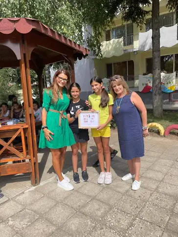 Със закупените блокчета, цветни моливи, флумастери, водни бои Йоана и Ели зарадваха децата преди началото на учебната година. Посещението им в ЦНСТДБУ приключи с волейболна игра.