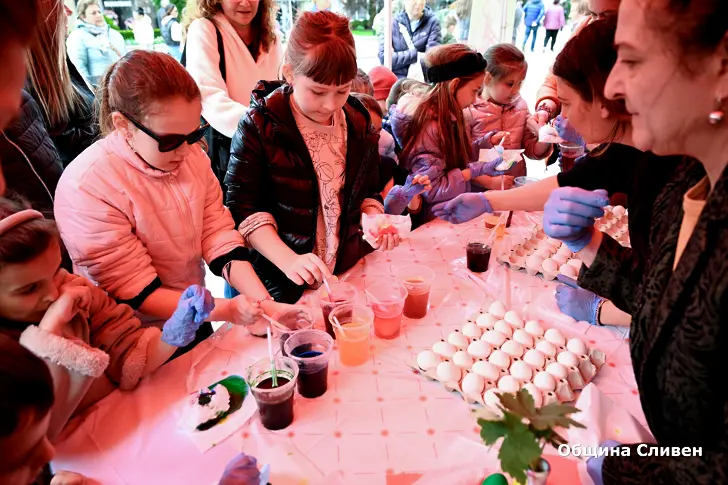 Община Сливен осигури 600 яйца. От 12:30 часа Сливенската света митрополия също организира боядисване на яйца в двора на храм „Св. Богородица“.