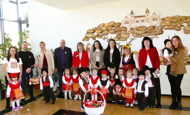 В навечерието на един от най-обичаните български празници – 1 март, сградата на Община Нова Загора се изпълни с детски смях, багри и пролетно настроение. Усмихнати и развълнувани, малчугани от Детската ясла и ДГ „Тракийче“ прекрачиха прага, за да поднесат своя сърдечен поздрав към кмета на общината Галя Захариева и общинското ръководство.