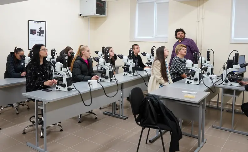Ученици от XII клас на профилираните паралелки по биология и химия на Езиковата гимназия с преподавател по биология Цветослава Манчева посетиха Центъра за компетентност по персонализирана медицина, 3Д и телемедицина, роботизирана и минимално инвазивна хирургия Леонардо да Винчи.