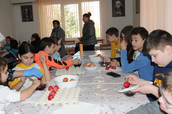 Още в края на миналата година, когато учениците посетиха храма по случай Рождество, свещениците отправиха към тях покана да се включат във Великденското боядисване на яйца, която беше приета с радост.