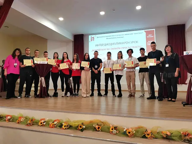 ДФСГ „Интелект“ представи на вниманието на гостите поредица от уроци и работни срещи: бинарен урок „Математика и английски език- в света около теб“ – с Таня Лалкова и Ани Андреева, изразяващ връзките между двата предмета, бинарен урок „Маркетинг на онлайн присъствието“- с Йоана Лазарова и Анета Юлиева , в който отборите правиха анализ на маркетингово проучване и правиха предложения за разработване на уебсайт.