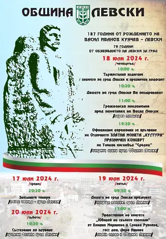 На 18 юли България отбелязва 187 години от рождението на своя най-свиден син - Васил Левски. Жителите и гостите на празника на град Левски в този ден ще изразят своята почит и признателност към Апостола на свободата, завещал ни безпределната си любов към отечеството.