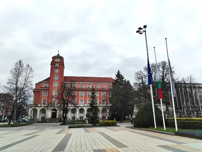 Българският национален флаг и знамето на Община Плевен на централния площад „Възраждане“ днес и утре ще бъдат спуснати наполовина.