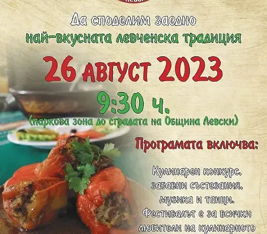 За четвърти път, част от програмата на традиционните Панаирни дни в град Левски, които се провеждат от 24 до 27 август, ще бъде Националният фестивал „Пълнената чушка – най-вкусната традиция.