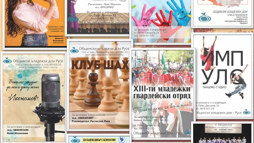 Общинският младежки дом в Русе приема нови членове за своите състави и клубове през следващия творчески сезон. Той започва на 1 октомври, а записването продължава до 28 септември на място на ул. „Райко Даскалов“ 2 А, срещу страничния вход на Съдебната палата.
