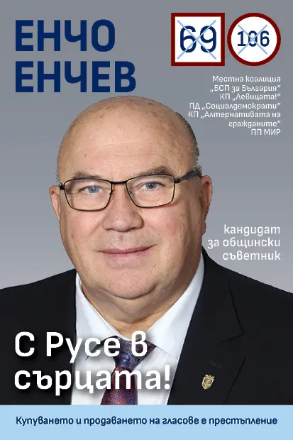 Енчо Енчев е кандидат за общински съветник от листата на “БСП за България”, коалицията е с №69 в бюлетината, а Енчо Енчев е с преференция 106.