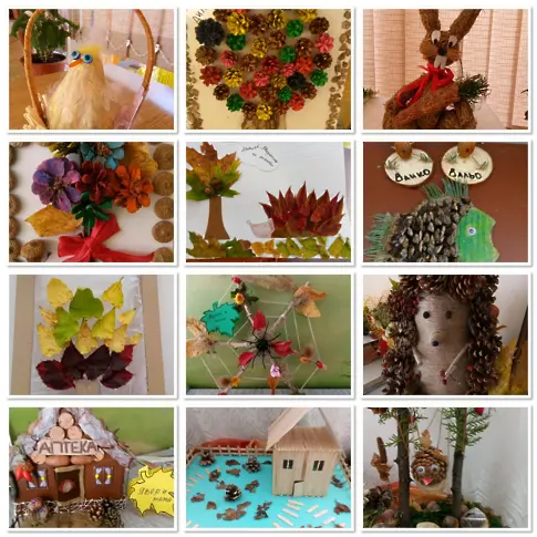 Децата, с помощта на своите родители, предоставиха изключително красиви, атрактивни и уникални творения, изработени с много вкус и любов. Представено бе богато разнообразие от рисунки, колажи и макети сътворени от есенните дарове на природата.За изработването на уникалните фигури и форми е използвано всичко, което може да бъде открито през сезона на есента - изсъхнали листа, шишарки, горски мъх, кестени, желъди, орехи, плодове, семена, цветя, дървесни материали и др. С много въображение и творчество участниците в изложбата са претворили естествените материали в разнообразни изделия. Подготвяйки изложбата, малките творци са провокирали родителите си да проявят своите естетически и художествени умения, а родителите от своя страна са помогнали с идеи и напътствия.