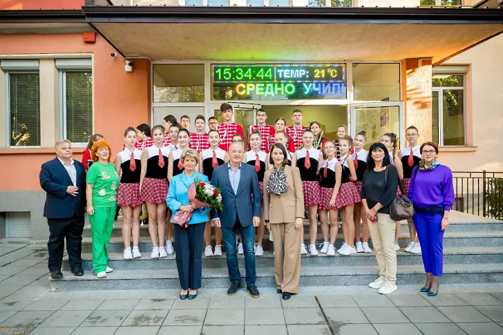 Директорът на СУ „Иван Вазов” Димитър Митев изненада Весела Лечева и Йелена Филипович-Стоянов със специалени подаръци - рисунки, сътворени с вдъхновение от възпитаници на училището, подчертавайки, че „няма нищо по-хубаво от детската рисунка”.