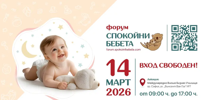 По традиция - на Бабинден - форум „Спокойни бебета“ представя основните акценти на предстоящото издание, което ще се проведе на 14 март 2026 г. в Международно висше бизнес училище в София. Форумът ще се реализира за четвърта поредна година и отново ще бъде с вход свободен.