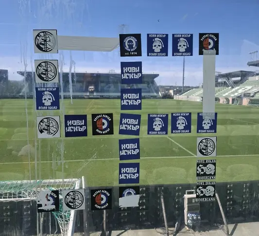 Привърженикът, който е в сектора за гости, залепя върху плексигласовата преграда над 20 стикера във формата на свастика. Той бива установен след преглед на записите от камерите и се съставя акт за установяване на административно нарушение.
