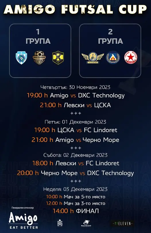 Сезонът във футзала у нас стартира с турнир Amigo Futsal Cup. Той ще се проведе в помощната зала на „Арена София” в столицата. Вече е изтеглен жребият. Участват 6 отбора, разпределени в 2 групи. Двубоите са от четвъртък до неделя.