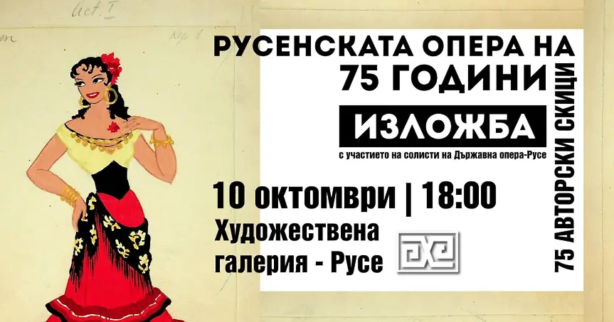 На 10 октомври от 18 часа в Художествена галерия – Русе ще бъде открита изложбата "75 АВТОРСКИ СКИЦИ" по случай 75 годишнината на Държавна опера - Русе.