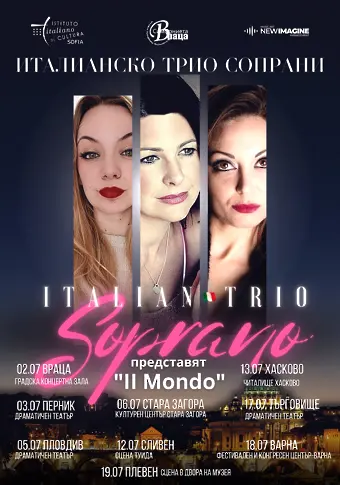 Турнето „Il Mondo“ на Италианското трио сопрани започва на 2-ри юли от 19.00ч. в залата на ДКТ-Враца.