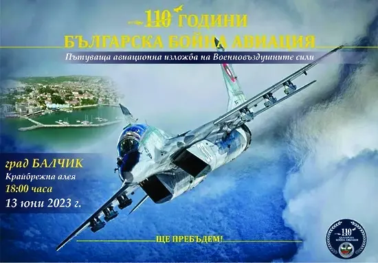 Изложба по повод 110 годишнината от създаването на Българската бойна авиация е подредена в началото на крайбрежната алея в Балчик. Експозицията съдържа 60 платна със снимки, които са запечатали моменти от ежедневието на родовете авиация - изтребителна, щурмова, транспортна и вертолетна. Показани са фотоси и с останалите родове войски от състава на ВВС - зенитно-ракетни и радиотехнически.
