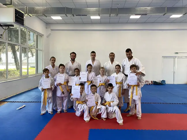 Явиха се 26 каратеки от които 12 деца се явяват за първи път и успешно защитиха жълт пояс (8- мо Кю).