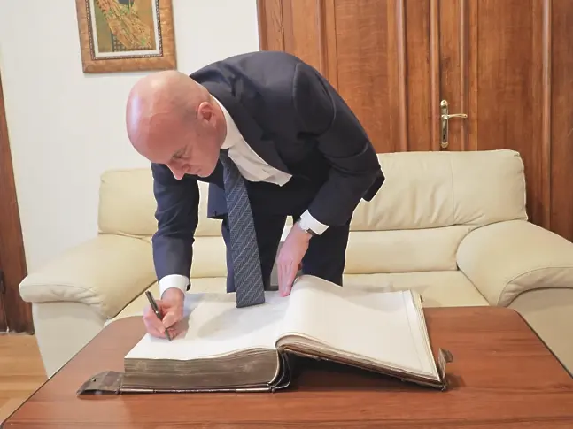 В знак на уважение и приятелство д-р Валентин Христов връчи на Н. Пр. Натаниел Копси и екипа му протоколни подаръци, а Негово Превъзходителство написа послание до жителите на Плевен в Почетната книга на града.