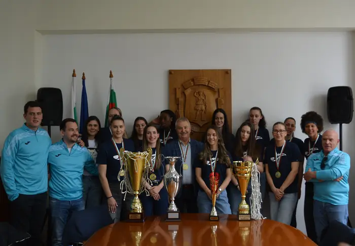 Кметът Златко Живков посрещна баскетболистките на Монтана след като завоюваха шампионската титла на страната за седми път в своята история.