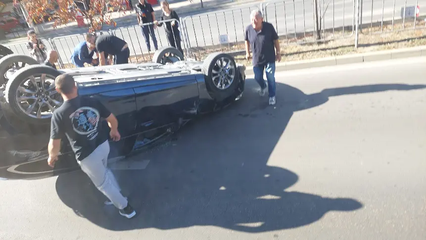 Кола се преобърна на центъра на Варна. Инцидентът е станал малко след 15:00 ч. днес.