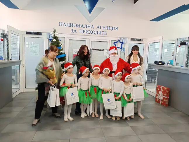 Служители и клиенти се насладиха на прекрасното изпълнение на децата от НУ „Единство“ и на талантливите грации от балетна школа при НЧ „Съгласие - 1869“ гр. Плевен, а в знак на благодарност, както традицията повелява, Дядо Коледа подари на всички деца торбичка с лакомства. Децата на служителите, участвали в коледния конкурс получиха специални награди от ръководството на НАП.