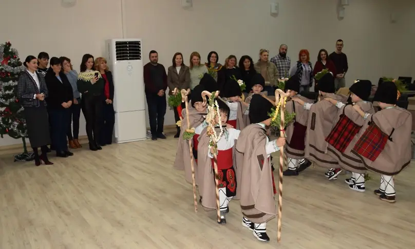 Децата пресъздадоха обичая коледуване, като изпълниха песни и наричания за здраве и благополучие през новата 2026 година.