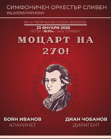 По този повод в петък 23 януари от 18:30ч. в зала "Сливен" ще се състои концертът "МОЦАРТ НА 270".
