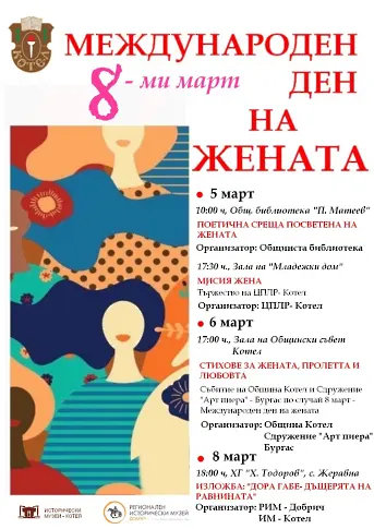 В навечерието на 8-ми март, Община Котел и културните институции в общината канят жителите и гостите на поредица от вдъхновяващи събития, посветени на Международния ден на жената.